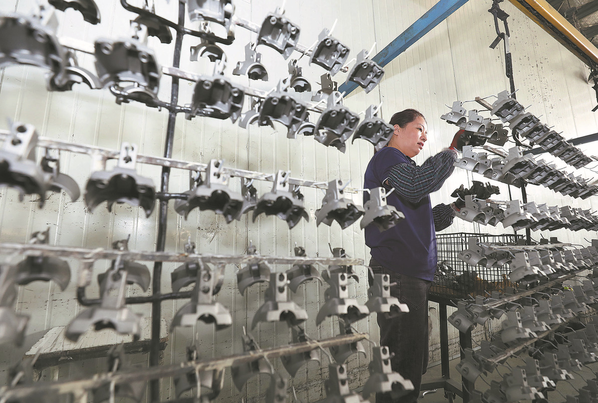 An employee works on a motorcycle parts production line in October in Huainan, Anhui province. In recent years, the province has been trying to seize opportunities presented by the Yangtze River Delta integration strategy. (Photo/Xinhua)