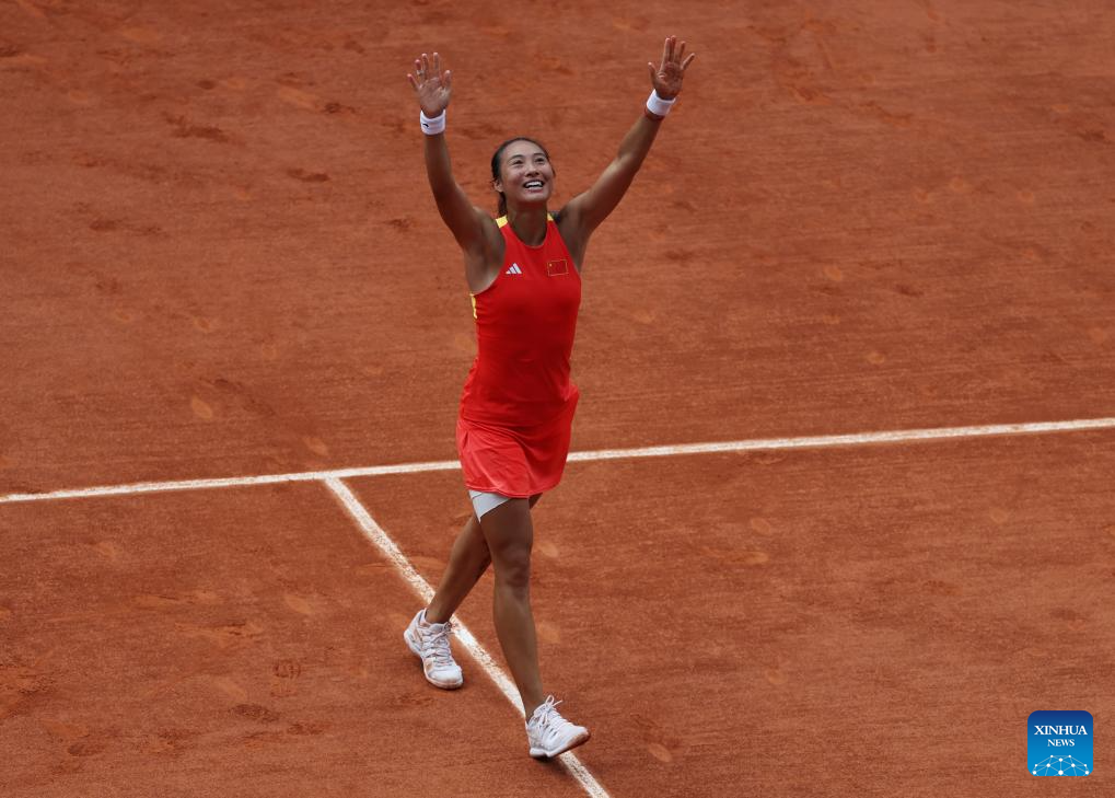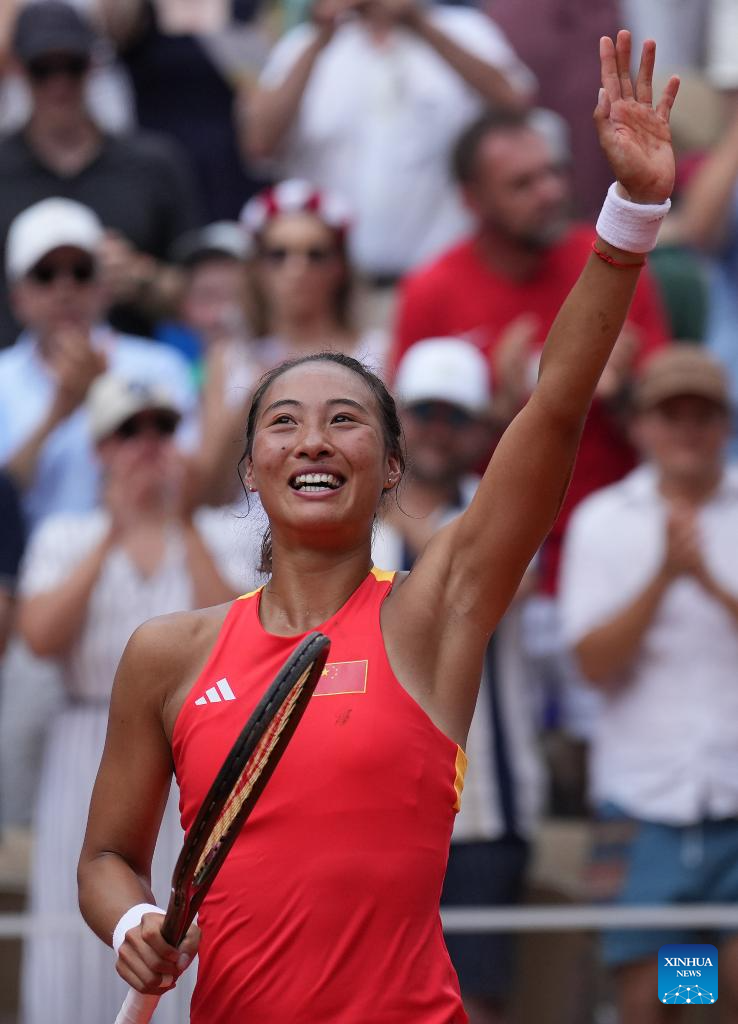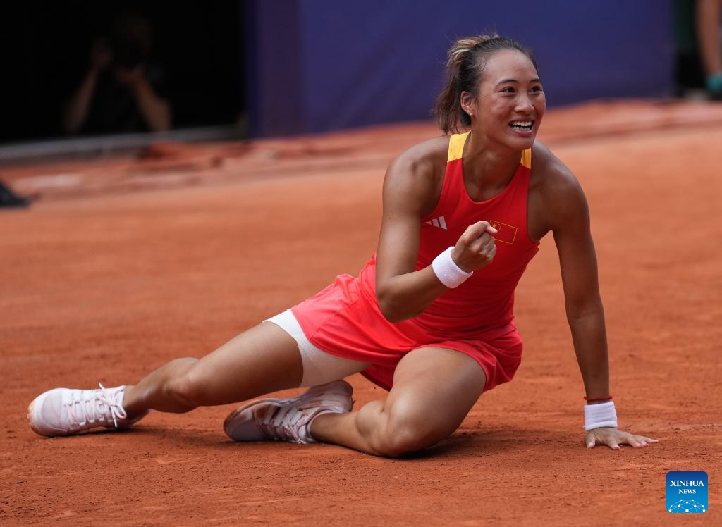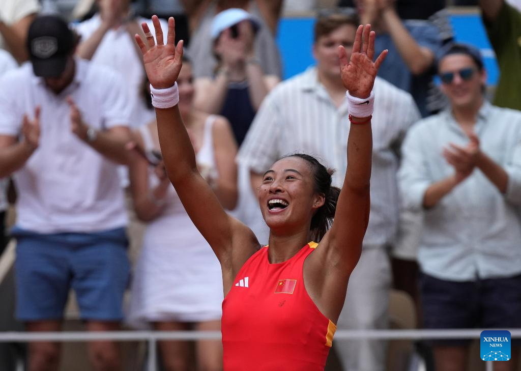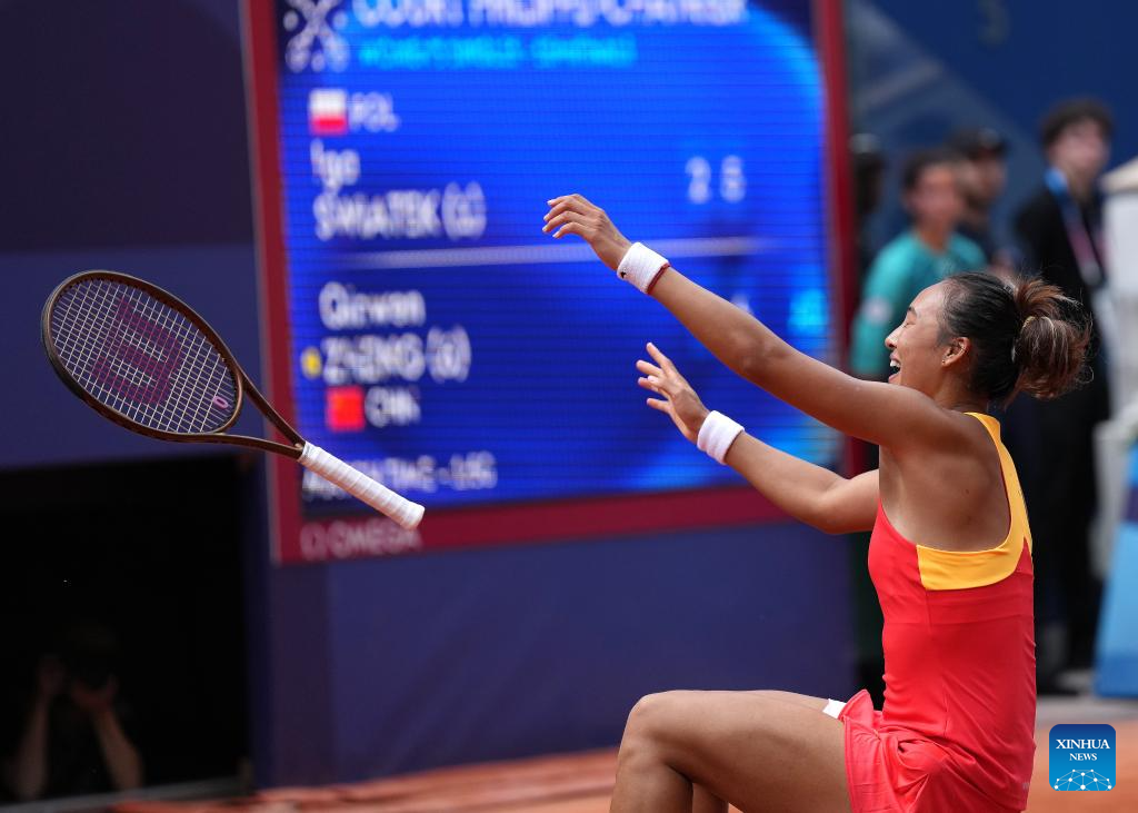 PARIS, Aug. 1 (Xinhua) -- Australian Open finalist Zheng Qinwen upset top seed Iga Swiatek 6-2, 7-5 in a historic win to book her place in the gold medal match of Olympic women's singles here at Roland Garros on Thursday.