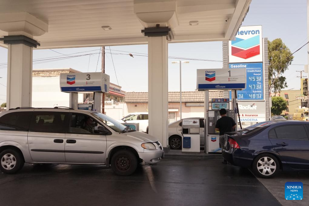 A man fuels a vehicle at a Chevron gas station in El Monte, Los Angeles County, California, the United States, on Aug. 2, 2024. Oil giant Chevron on Friday announced the relocation of its headquarters from San Ramon, California, to Houston, Texas, becoming the latest company to exit California, the largest economy and most populous state in the United States. (Photo by Zeng Hui/Xinhua)