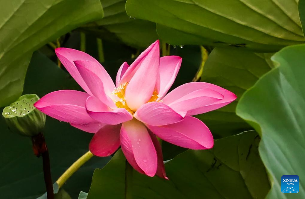 This photo shows a lotus in a pond in Dongnan Village in Yinan County, east China's Shandong Province, Aug. 5, 2024. (Photo by Wang Yanbing/Xinhua)