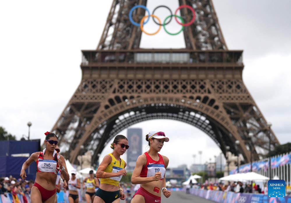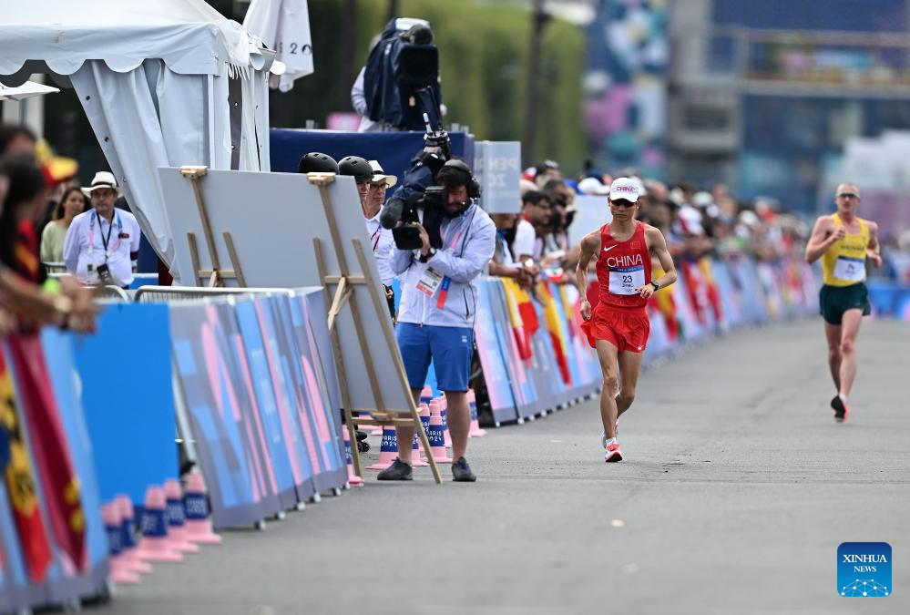 Yang Jiayu of China competes during the marathon race walk relay mixed of Athletics at the Paris 2024 Olympic Games in Paris, France, Aug. 7, 2024. (Xinhua/Li Gang)