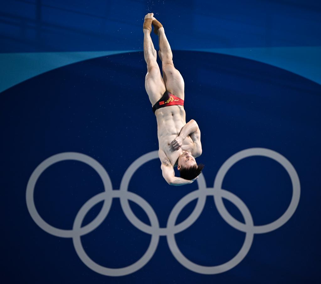 Xie Siyi of China competes during the men's 3m springboard final of diving at the Paris Olympics on Aug. 8, 2024. (Xinhua/Wang Peng)