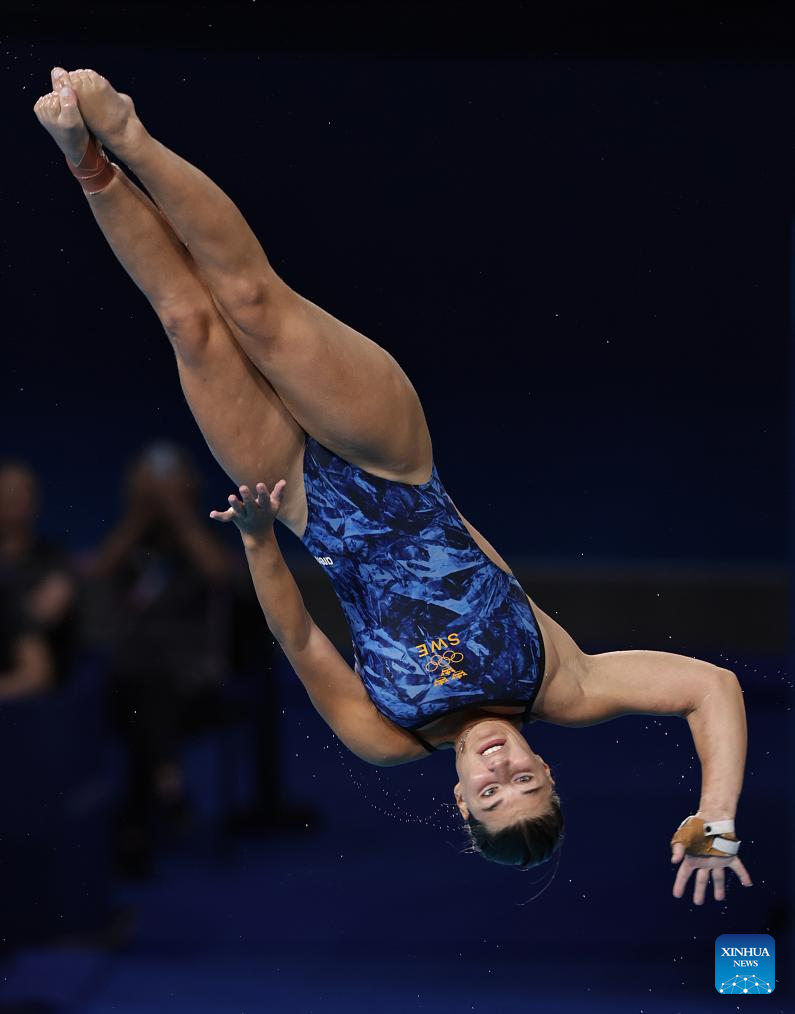 Emilia Nilsson Garip of Sweden competes during the women's 3m springboard semifinal of diving at the Paris 2024 Olympic Games in Saint-Denis, France, Aug. 8, 2024. (Xinhua/Zhang Yuwei)
