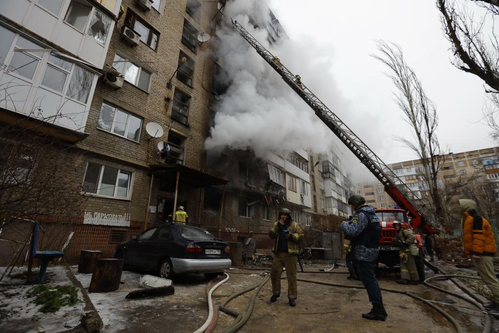 A damaged building hit by shelling is pictured in Donetsk, Dec. 19, 2023. (Photo by Victor/Xinhua)