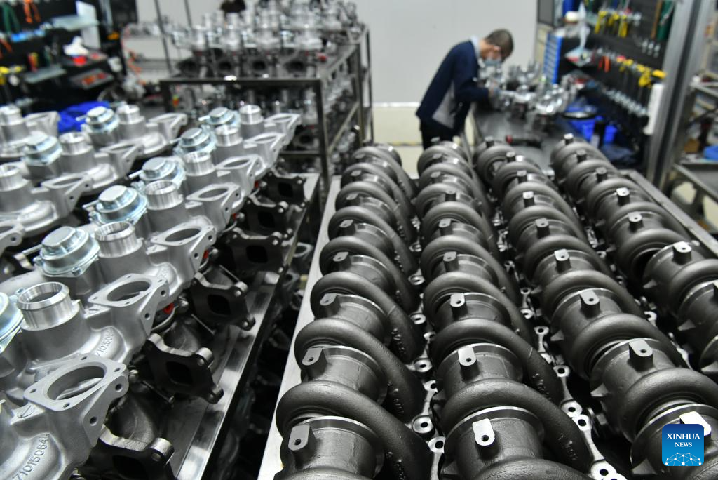 A worker operates at a workshop of Turbo Auto Parts Remanufaturing (Hebei) Co., Ltd. in Hejian city, north China's Hebei province, Aug. 10, 2024. There are more than 170 remanufaturing enterprises in Hejian city, focusing on areas of automotive parts, oil drilling equipment, and computer servers. They were recognized by the Ministry of Industry and Information Technology as a distinctive industrial cluster of small and medium enterprises in 2022, and generated a combined revenue of more than 14 billion yuan (about 1.96 billion US dollars) in 2023. (Xinhua/Mu Yu)