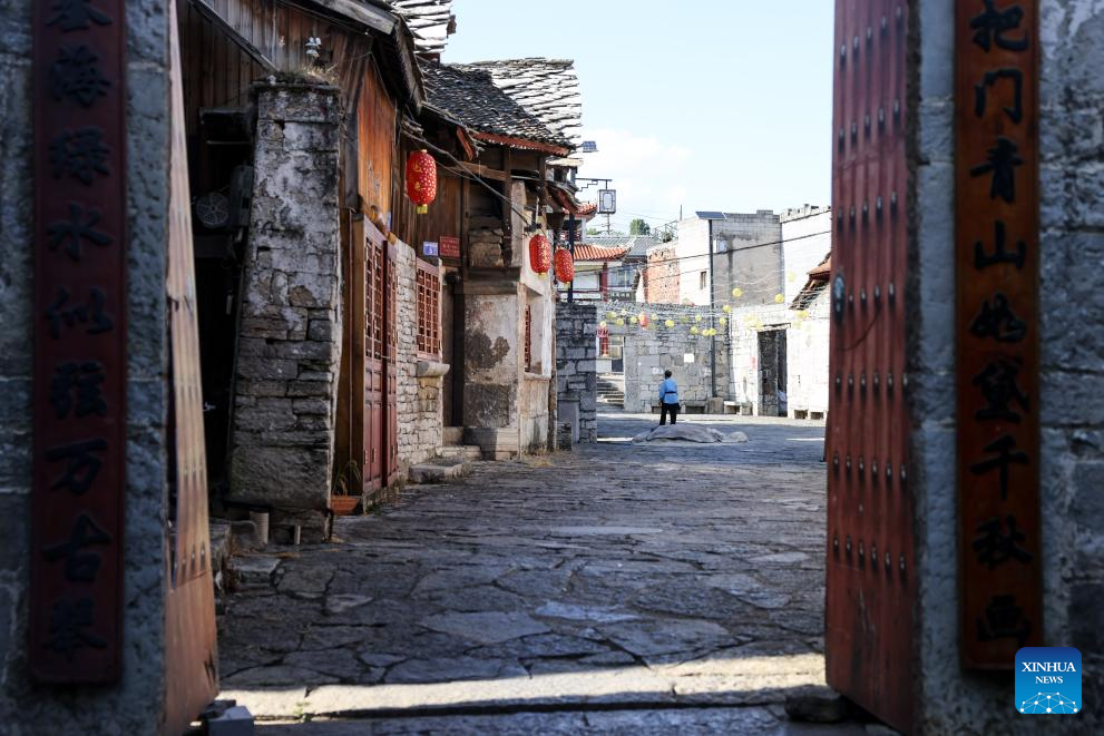 Lanes are pictured among stone buildings in Benzhai Village in Xixiu District of Anshun City, southwest China's Guizhou Province, July 23, 2024.