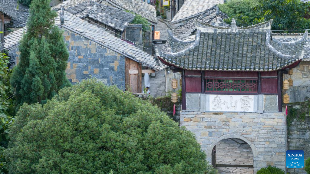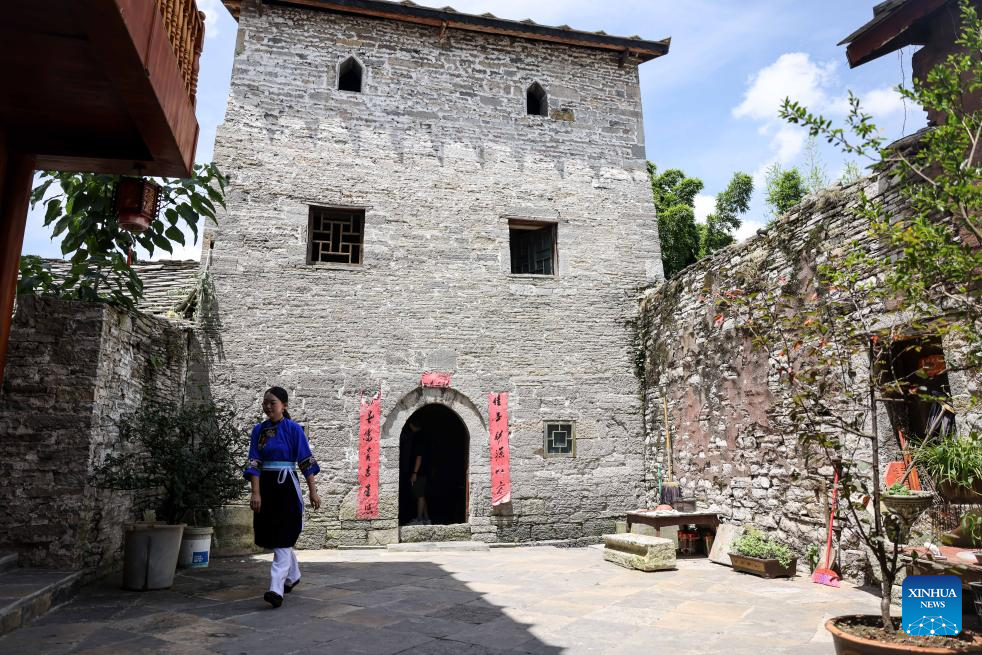 A stone building is pictured at an ancient town in Pingba District of Anshun City, southwest China's Guizhou Province, July 25, 2024.