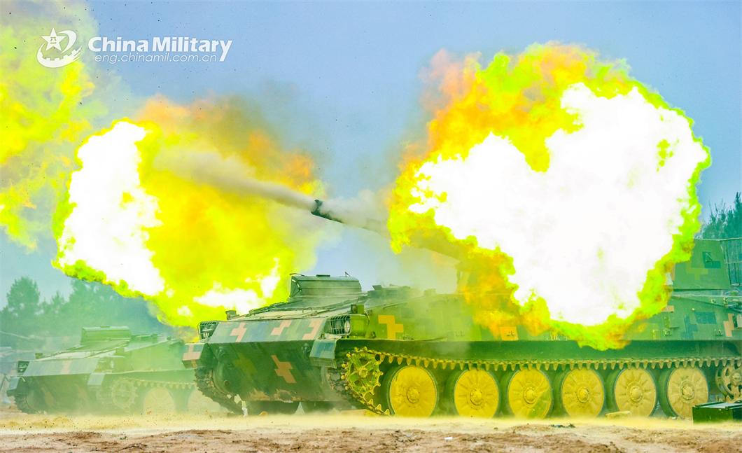 A self-propelled howitzer attached to a brigade under the PLA 71st Group Army fires at a mock target during a live-fire training exercise on June 20, 2024. (eng.chinamil.com.cn/Photo by Hu Liangchao)