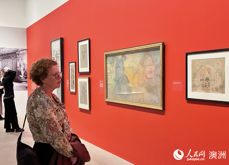 Visitor admire Mucha's works at the exhibition at the Art Gallery of New South Wales in Australia. (Photo/Bai Yuchen)