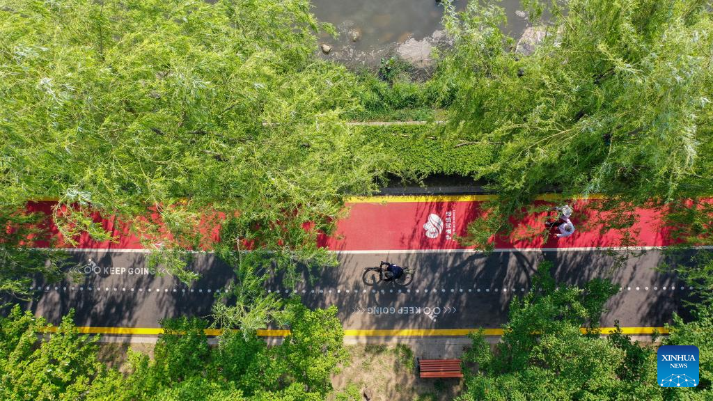 An aerial drone photo taken on July 2, 2024 shows greenery along Yitong River in Changchun, northeast China's Jilin Province. As the eastern part of the Three-North Shelterbelt Forest Program (TSFP), a large-scale afforestation project, northeast China has seen continuous improvement of ecological environment. China proposed in June 2023 to turn the TSFP into a fully functional and unbreakable "green Great Wall" and ecological security barrier in northern China. Launched in 1978, the TSFP aims to rehabilitate and green desert-prone lands and desertified areas in northwest, north and northeast China. (Xinhua/Zhang Nan)