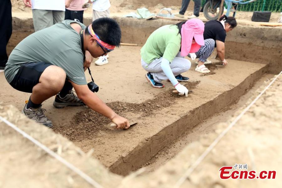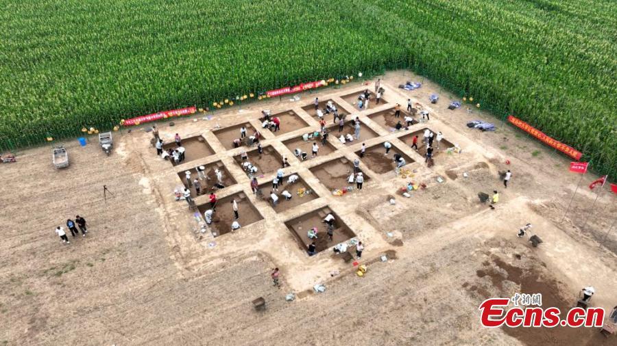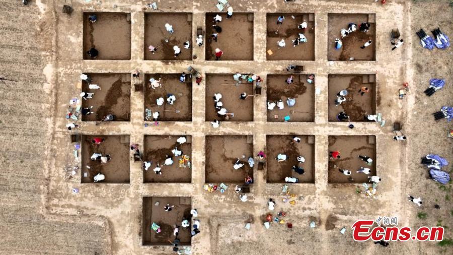 Archaeologists work at the excavation site of Bairen Town ruins in Longyao County of Xingtai City, north China's Hebei Province, Aug. 14, 2024. (Photo: China News Service/Zhang Ling)