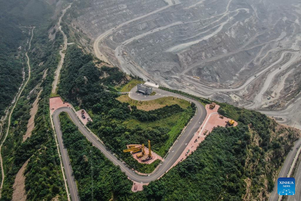 This photo taken on Aug. 15, 2024 shows a view of a park inside the Nanfen iron open-pit mine, in Benxi, northeast China's Liaoning Province. The Nanfen iron open-pit mine in northeast China's Liaoning Province in recent years has been making efforts to promote green and sustainable development. (Xinhua/Pan Yulong)