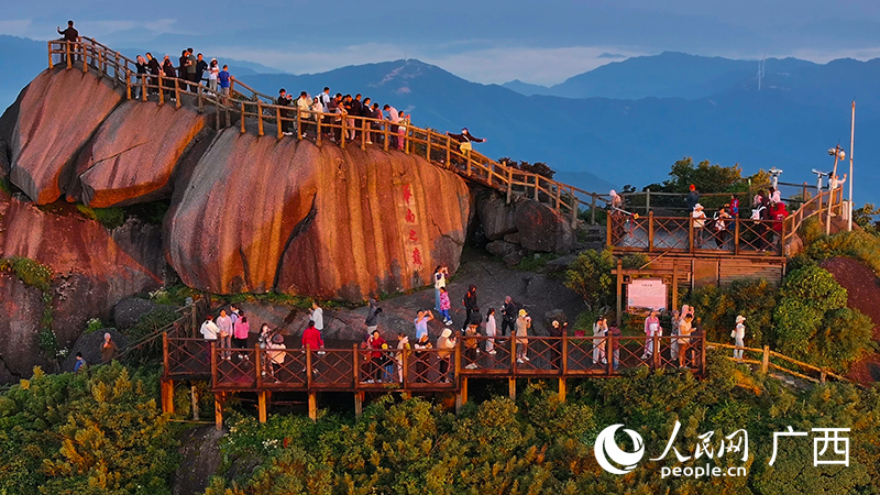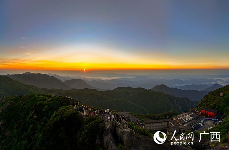 Tourists appreciate the sunrise on Mao'er Mountain in Guilin, south China's Guangxi Zhuang Autonomous Region. (People's Daily Online/Lei Qijun)