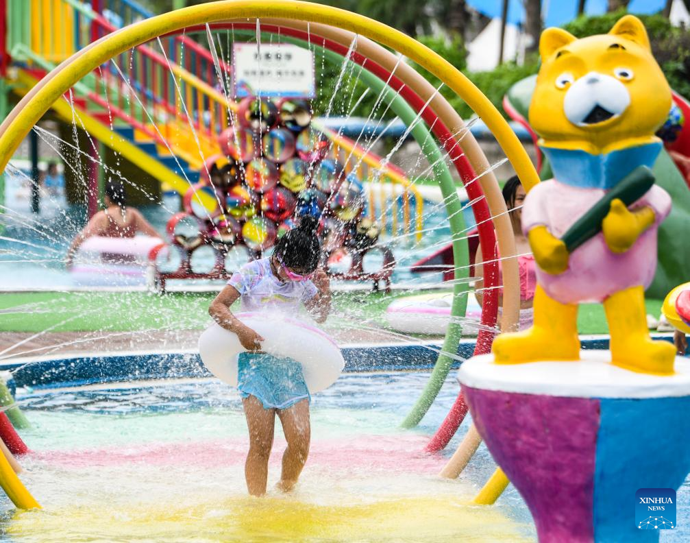 A girl has fun at a water park in Fuling District, southwest China's Chongqing Municipality, Aug. 18, 2024. (Xinhua/Wang Quanchao)