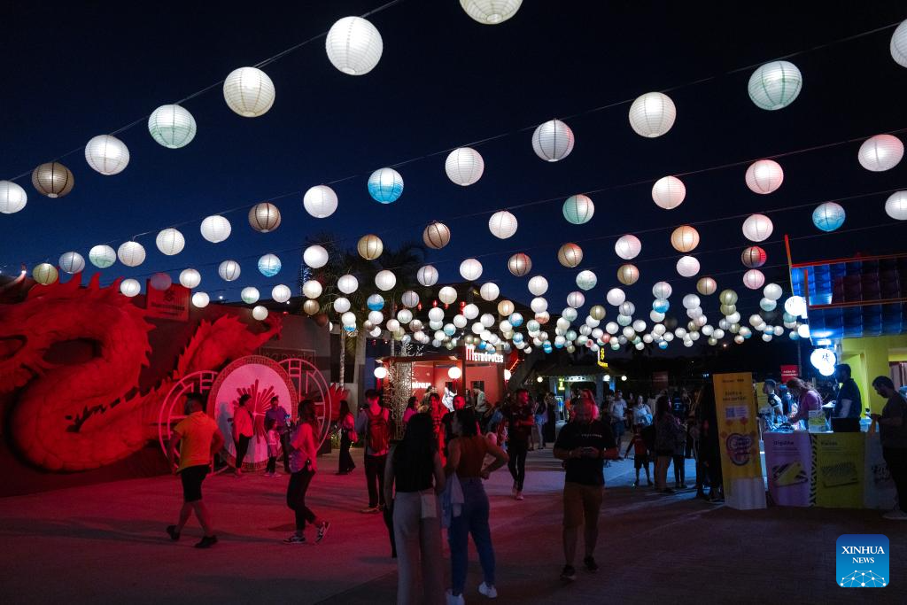 People take photos during the Na Praia Festival-China Day in Brazilia, Brazil on Aug. 17, 2024. This event was held here on Saturday in commemoration of the 50th anniversary of the establishment of diplomatic relations between China and Brazil. (Xinhua/Wang Tiancong)