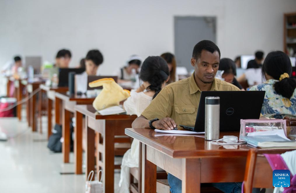 Lugazo Abubakar Lugazo studies at the library of Central China Normal University in Wuhan, central China's Hubei Province, June 24, 2024.(Xinhua/Hu Jingwen)