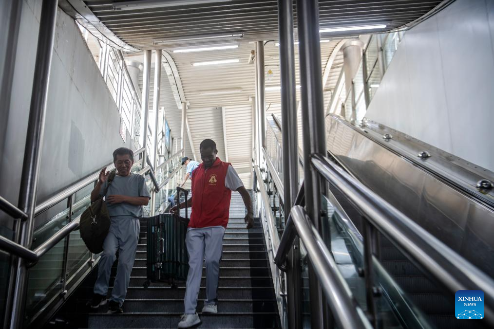 Lugazo Abubakar Lugazo (L) provides help for a passenger at a metro station in Wuhan, central China's Hubei Province, Aug. 18, 2024. (Xinhua/Wu Zhizun)
