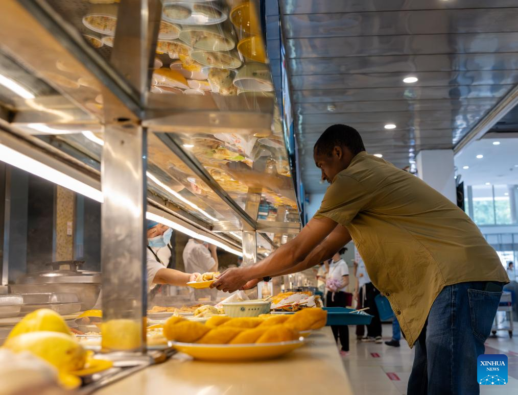 Lugazo Abubakar Lugazo gets a meal at a canteen of Central China Normal University in Wuhan, central China's Hubei Province, June 24, 2024.(Xinhua/Hu Jingwen)