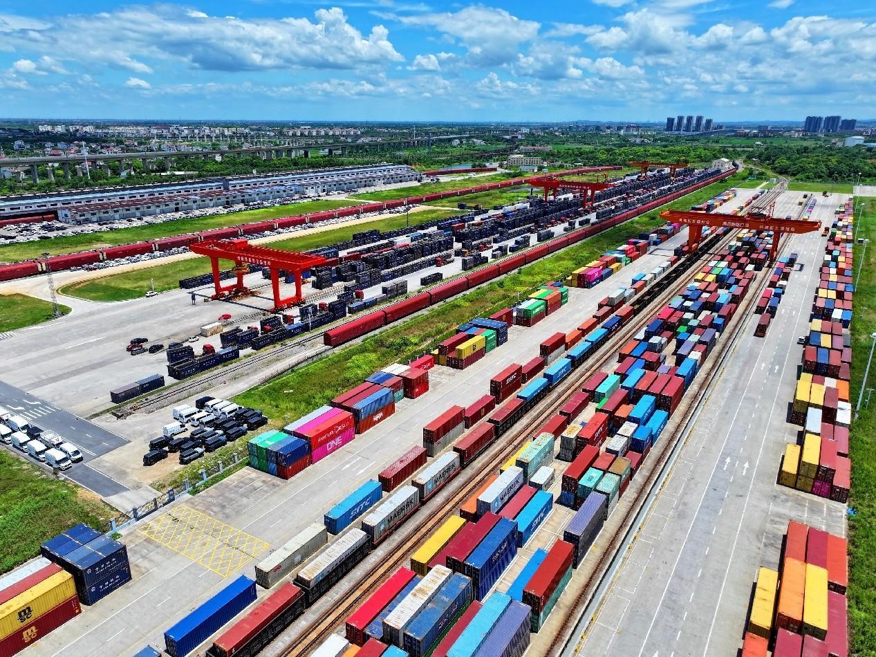 Photo shows a container yard of Nanchang International Land Port in Nanchang, east China's Jiangxi province. (People's Daily Online/Zhu Haipeng)
