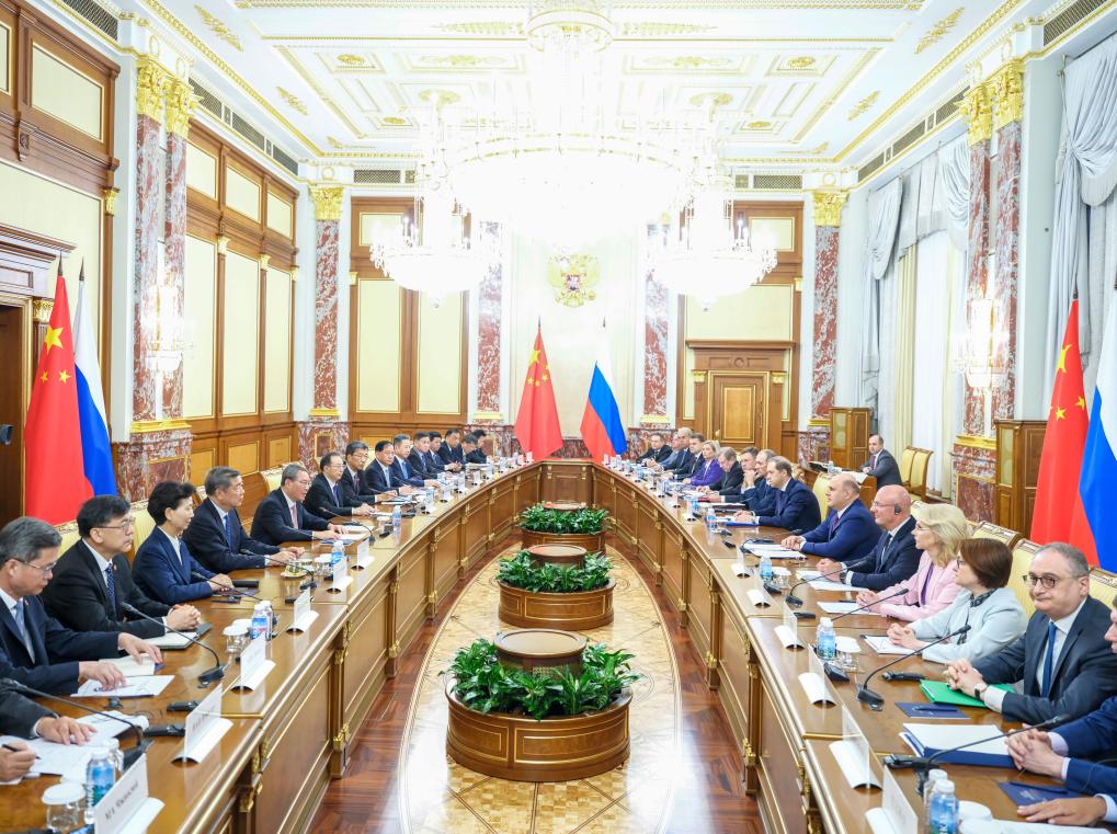 Chinese Premier Li Qiang co-chairs the 29th regular meeting between Chinese and Russian heads of government with Russian Prime Minister Mikhail Mishustin in Moscow, Russia, Aug. 21, 2024. (Xinhua/Rao Aimin)
