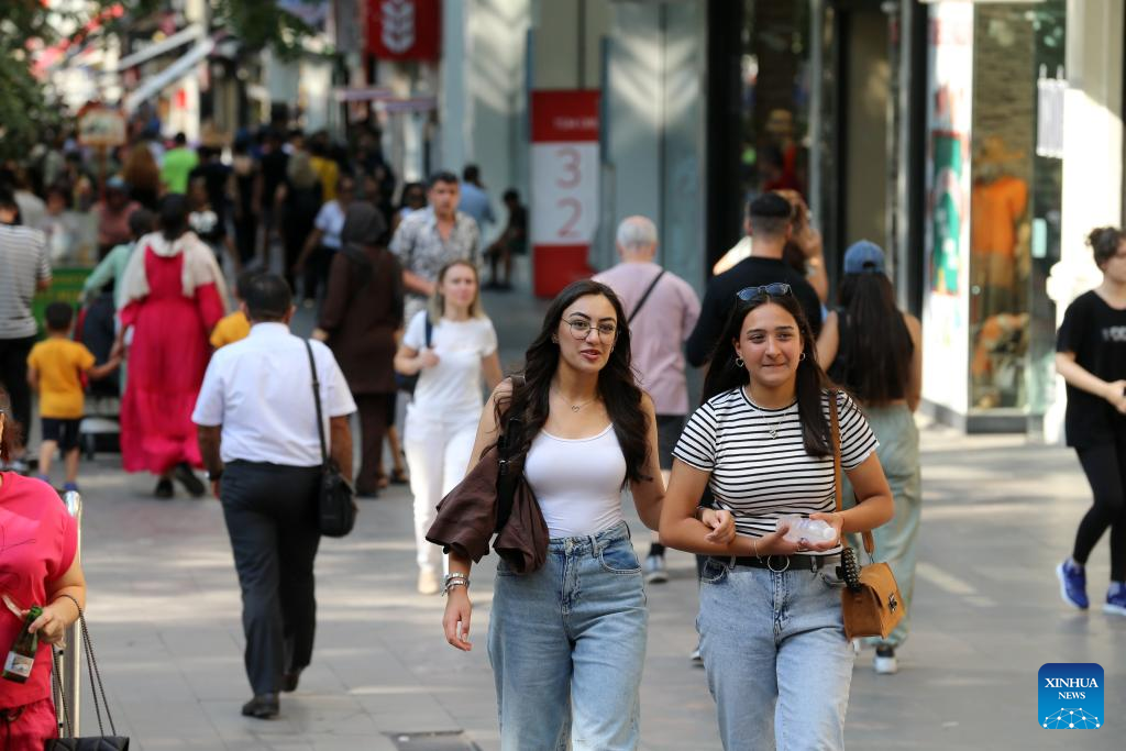 Young people are seen on the street in Ankara, Türkiye, Aug. 22, 2024. (Mustafa Kaya/Handout via Xinhua)