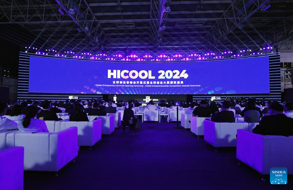This photo taken on Aug. 23, 2024 shows a view of the opening ceremony of HICOOL 2024 Global Entrepreneur Summit and the Global Entrepreneurship Competition Awards Ceremony in Beijing, capital of China. The global entrepreneur summit was held in Beijing from Friday to Sunday. (Xinhua/Ren Chao)