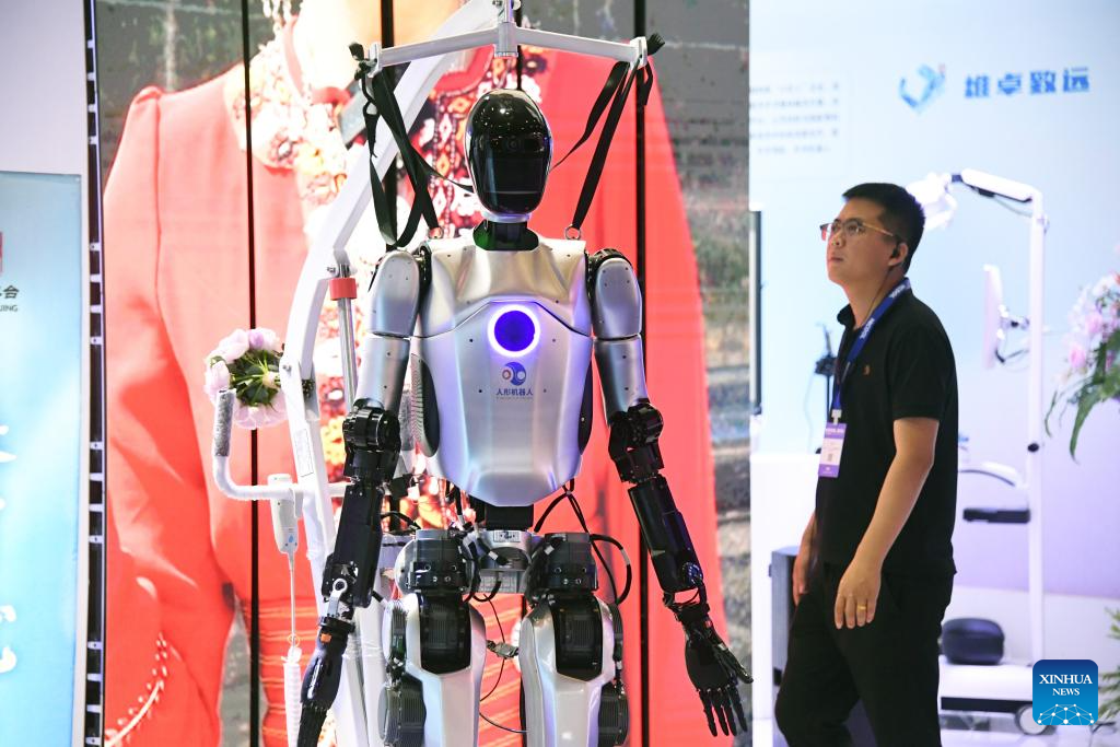 This photo taken on Aug. 23, 2024 shows a humanoid robot at the exhibition area of HICOOL 2024 Global Entrepreneur Summit in Beijing, capital of China. The global entrepreneur summit was held in Beijing from Friday to Sunday. (Xinhua/Ren Chao)