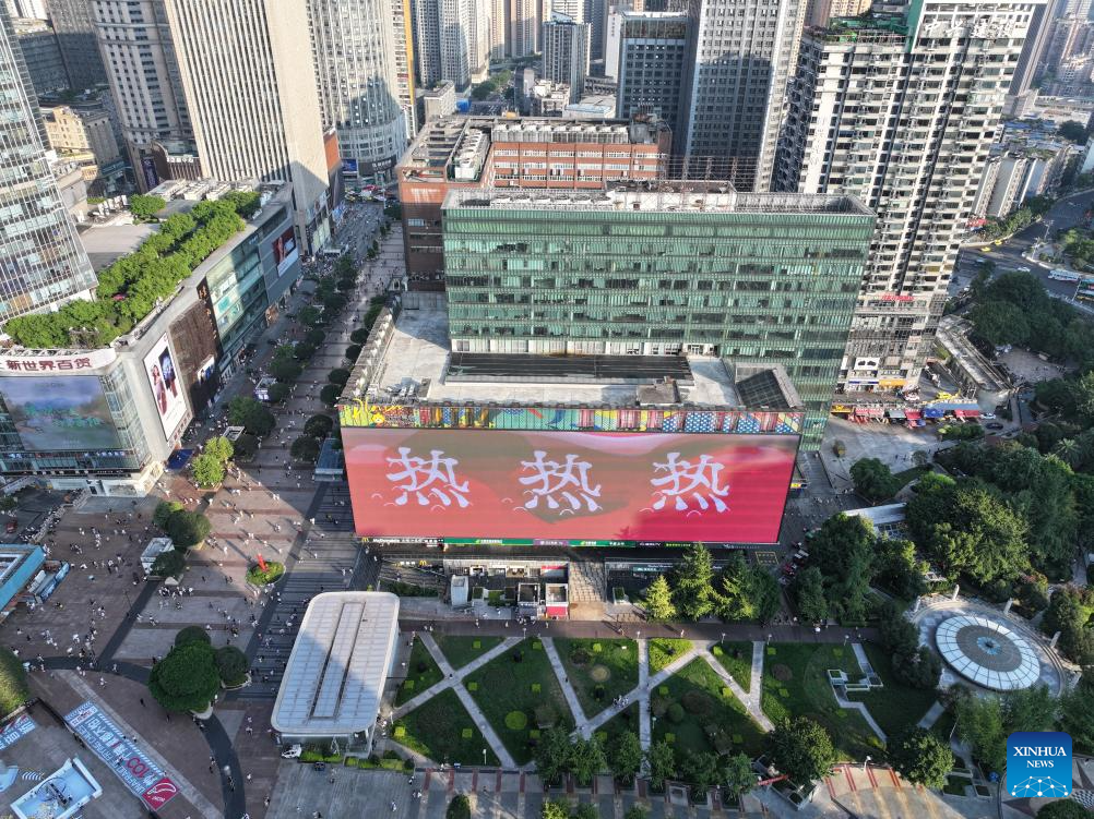 Tourists visit the Guanyinqiao business area in southwest China's Chongqing, Aug. 19, 2024. Renowned tourist destinations in Chongqing, a city known for its high temperatures, attract many tourists in summer. (Xinhua/Wang Quanchao)