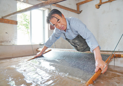 When making mulberry-bark paper, each step should be taken seriously, Wang said, adding that the most difficult step in making this kind of paper is the process of laozhi, which literally means getting paper out of water.