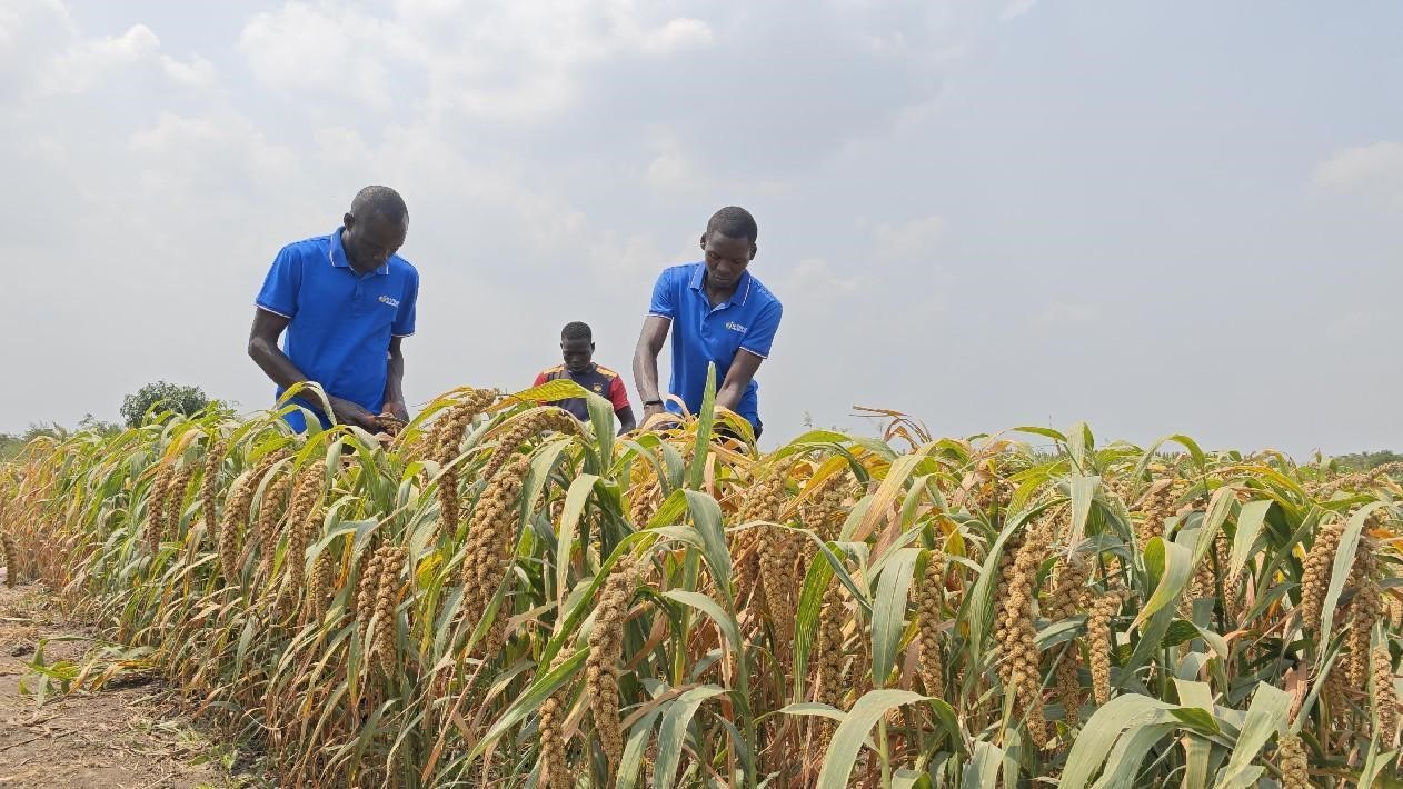 Local workers harvest Chinese foxtail millet in a test field of a China-Uganda agricultural cooperation park. (Photo/Long Wenjing)