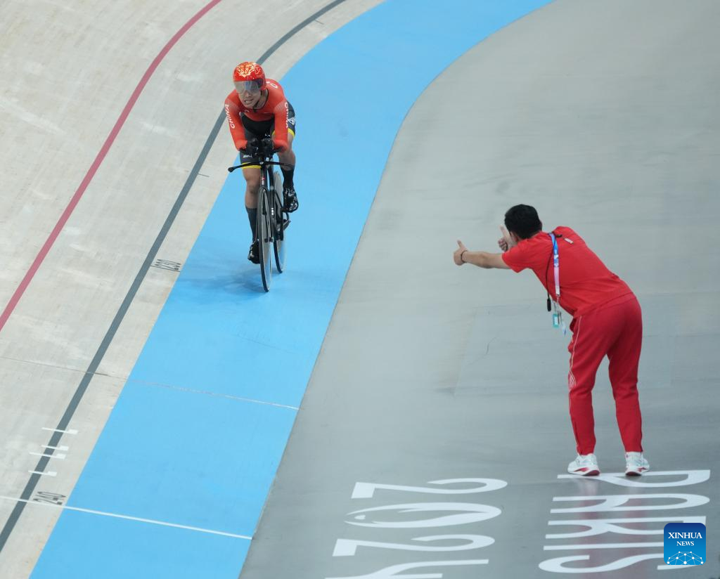 PARIS, Aug. 29 (Xinhua) -- Chinese cyclist Li Zhangyu claimed the nation's first gold medal by beating his compatriot Liang Weicong in the men's C1 3,000m individual pursuit gold medal match at Paris Paralympics here on Thursday.