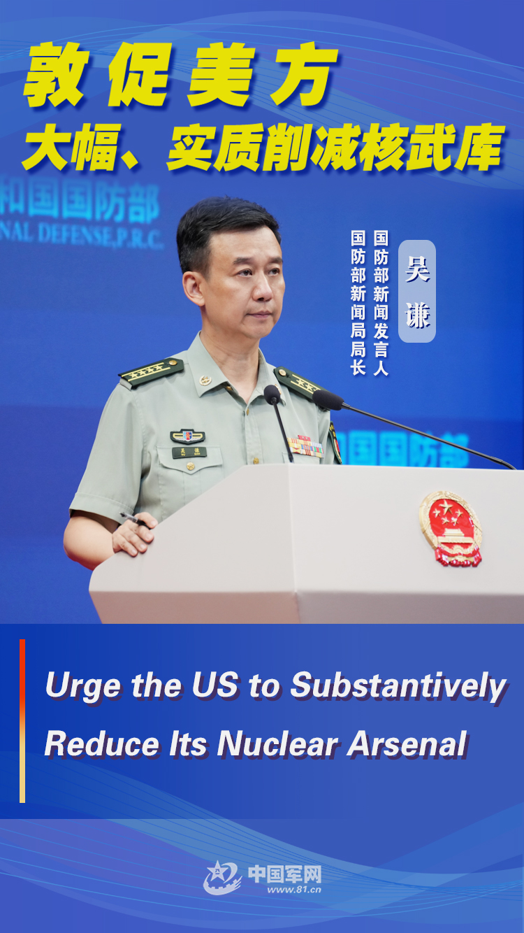 Wu Qian: China firmly opposes the US expanding its nuclear arsenal and shirking responsibilities for nuclear disarmament under the pretext of the non-existent "China nuclear threat". China pursues a nuclear strategy of self-defense, and keeps its nuclear force at the minimum level required for national security. It is known to all that the US is in possession of the largest nuclear arsenal in the world, and it follows a nuclear policy that allows first use of nuclear weapons. In recent years, the US has invested heavily to miniaturize nuclear weapons for real combat, and exercised a "double standard" on nuclear proliferation, which severely threatens global strategic stability. We urge the US to abandon Cold War mentality, further reduce its nuclear arsenal in a substantive manner, stop proliferating nuclear material and technology, refrain from extending nuclear deterrence or expanding nuclear alliance, and take concrete actions to promote global strategic stability.