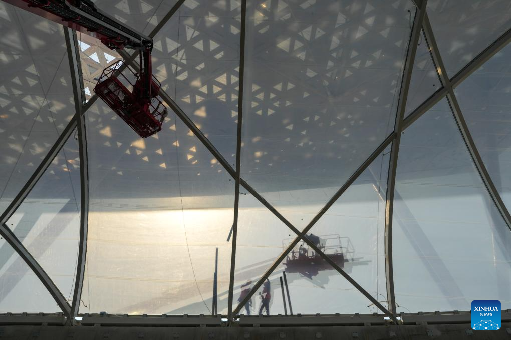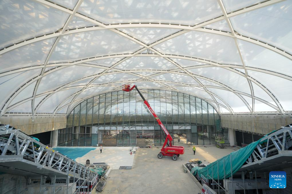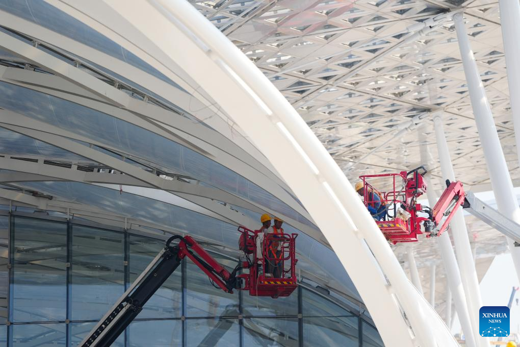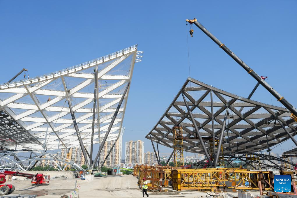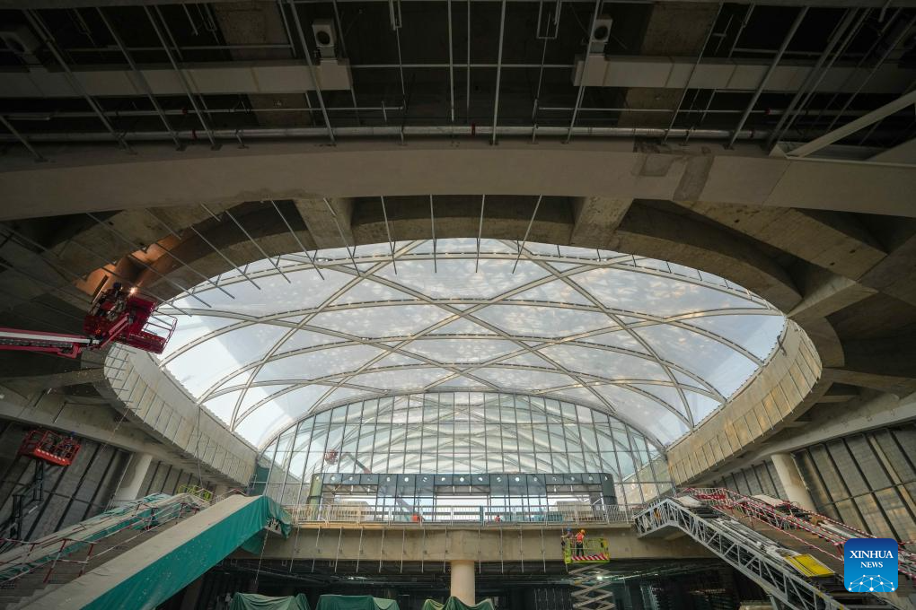This photo taken on Aug. 30, 2024 shows the construction site of the integrated transportation hub at the Beijing Sub-center Station in Tongzhou District, sub-center of Beijing, capital of China. (Xinhua/Ju Huanzong)