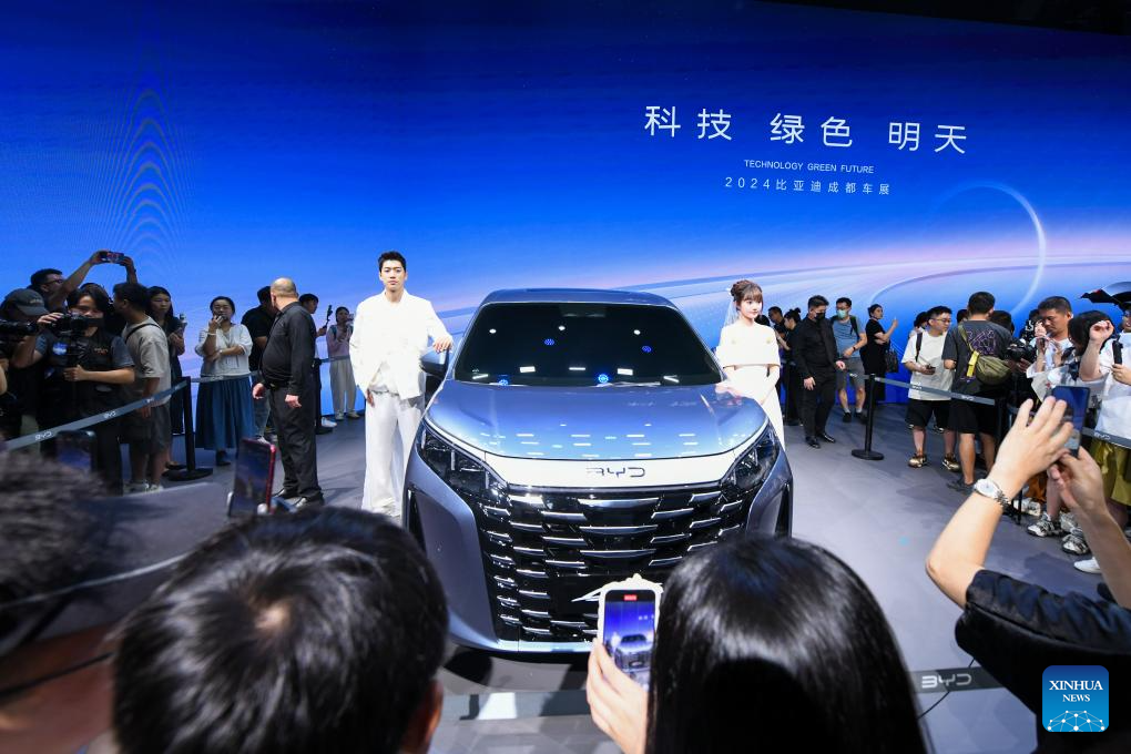 Chinese NEV manufacturer BYD presents MPV Xia during Chengdu Motor Show 2024 in Chengdu, southwest China's Sichuan Province, Aug. 30, 2024. The Chengdu Motor Show 2024 kicked off here on Friday. Nearly 130 Chinese and foreign car companies made appearance during the motor show, with more than 1,600 vehicles on display. (Xinhua/Tang Wenhao)