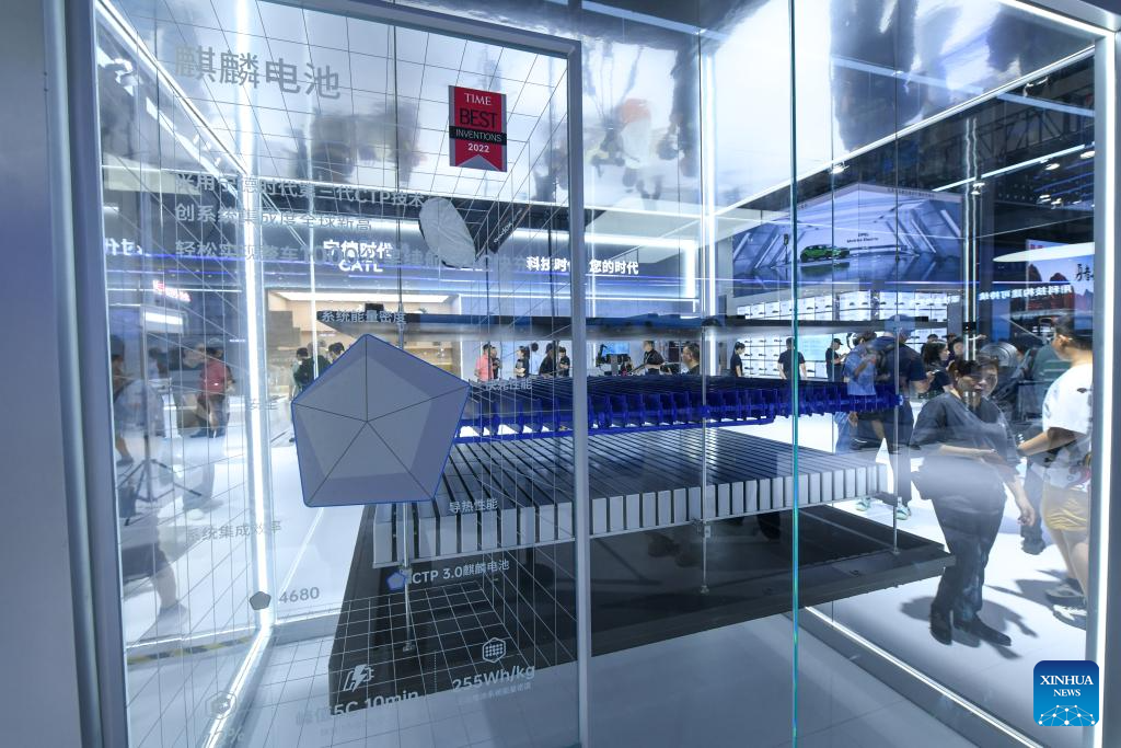 Qilin battery from Contemporary Amperex Technology Co., Limited (CATL) is on display during Chengdu Motor Show 2024 in Chengdu, southwest China's Sichuan Province, Aug. 30, 2024. The Chengdu Motor Show 2024 kicked off here on Friday. Nearly 130 Chinese and foreign car companies made appearance during the motor show, with more than 1,600 vehicles on display. (Xinhua/Tang Wenhao)