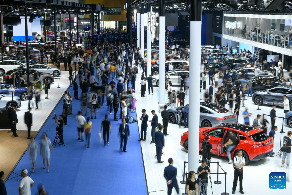 People visit Chengdu Motor Show 2024 in Chengdu, southwest China's Sichuan Province, Aug. 30, 2024. The Chengdu Motor Show 2024 kicked off here on Friday. Nearly 130 Chinese and foreign car companies made appearance during the motor show, with more than 1,600 vehicles on display. (Xinhua/Tang Wenhao)