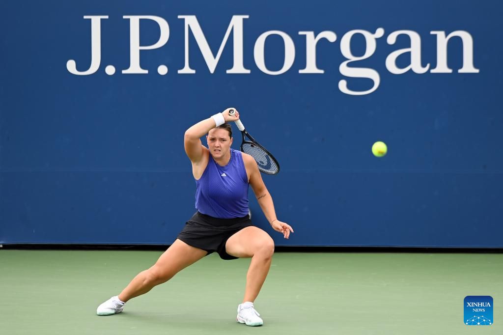 Jule Niemeier of Germany competes during the women's singles third round match between Zheng Qinwen of China and Jule Niemeier of Germany at the 2024 US Open tennis championships in New York, the United States, on Aug. 30, 2024. (Xinhua/Li Rui)