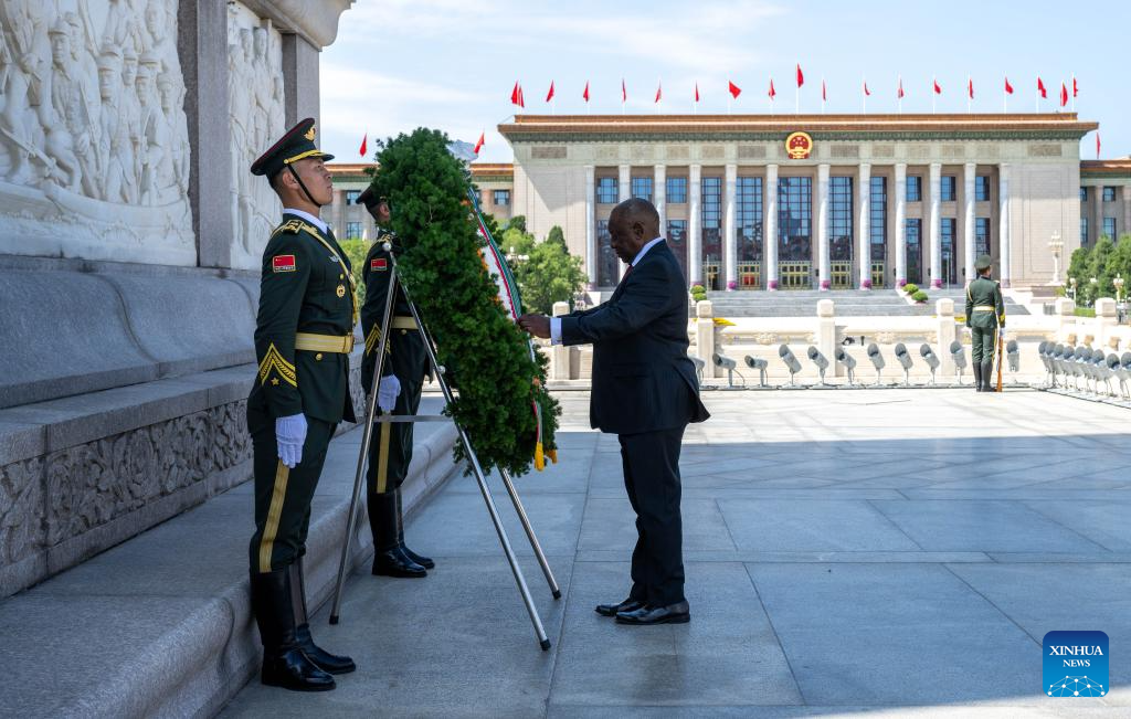 South African president lays wreath at Monument to People's Heroes in Beijing