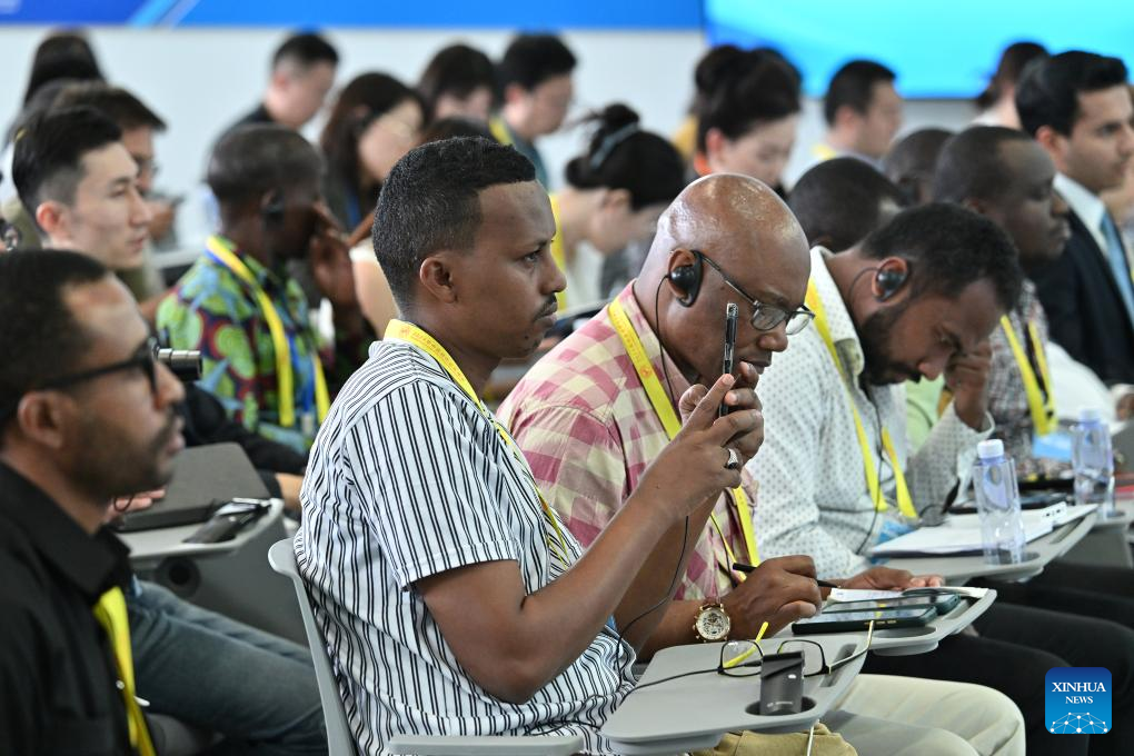 Journalists attend a press briefing of the 2024 Summit of the Forum on China-Africa Cooperation (FOCAC) in Beijing, capital of China, Sept. 2, 2024. (Xinhua/Li Xin)