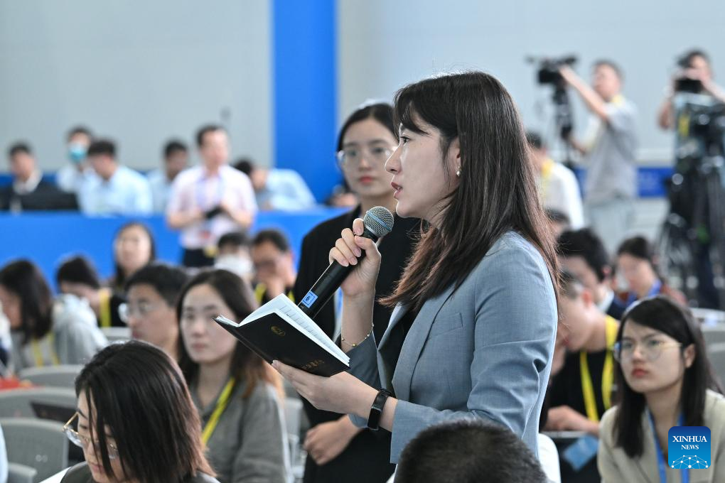 A journalist asks questions at a press briefing of the 2024 Summit of the Forum on China-Africa Cooperation (FOCAC) in Beijing, capital of China, Sept. 2, 2024. (Xinhua/Li Xin)
