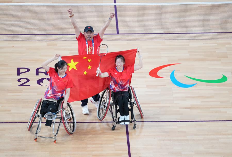PARIS, Sept. 2 (Xinhua) -- "Every night when I lay in my bed, the same thought echoed in my mind -- I've trained so hard for the Games, and I have to win in Paris," Chinese shuttler Yin Menglu recalled after claiming the gold medal in the women's doubles WH1-WH2 with her partner, the Tokyo Paralympic champion Liu Yutong at the Paris Paralympics on Sunday.