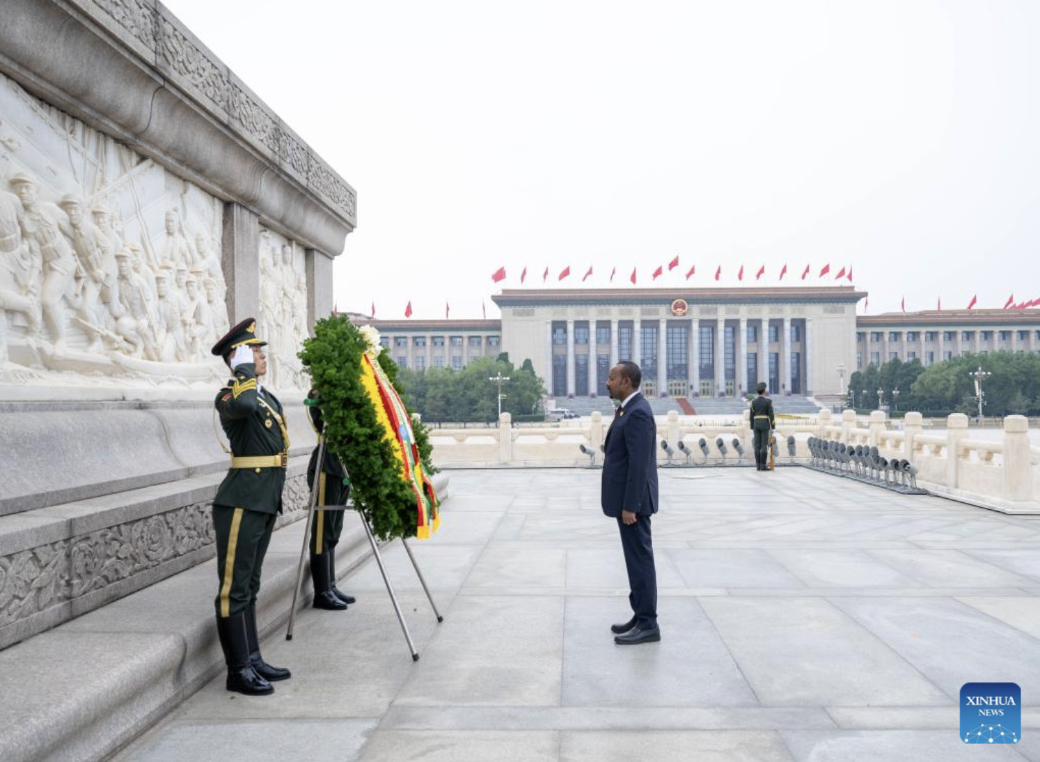 Ethiopian PM lays wreath at Monument to People's Heroes in Beijing