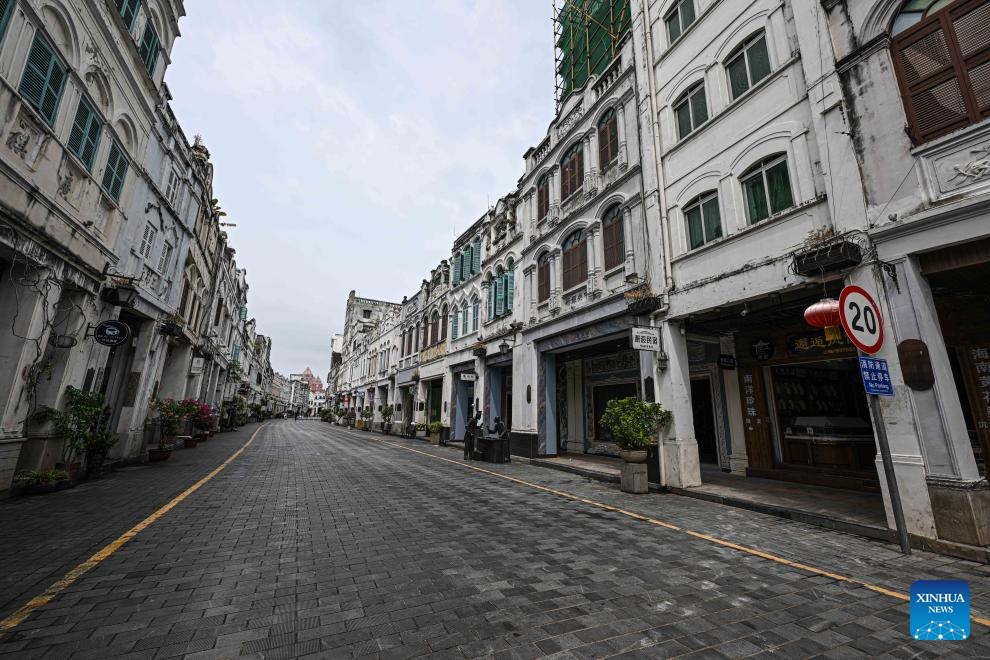 The Qilou old street is seen in Haikou, south China's Hainan Province, Sept. 5, 2024. The State Flood Control and Drought Relief Headquarters raised its emergency response for flood and typhoon prevention from level III to level II in Guangdong and Hainan provinces at 3 p.m. Thursday, as typhoon Yagi approaches.