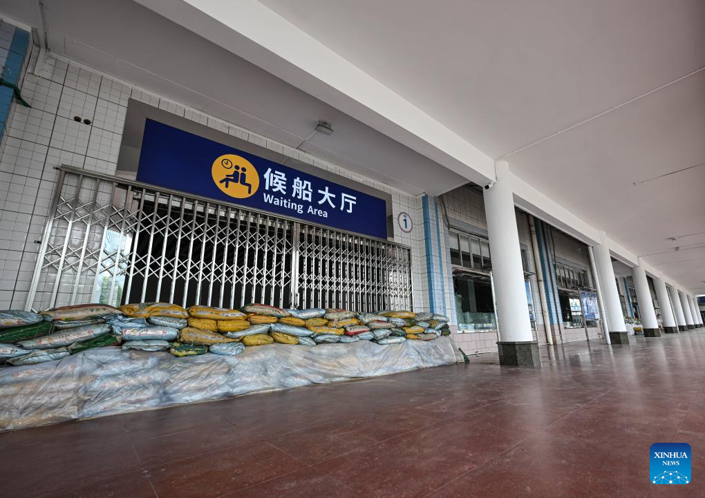 The closed Xiuying Port is seen in Haikou, south China's Hainan Province, Sept. 5, 2024. The State Flood Control and Drought Relief Headquarters raised its emergency response for flood and typhoon prevention from level III to level II in Guangdong and Hainan provinces at 3 p.m. Thursday, as typhoon Yagi approaches.