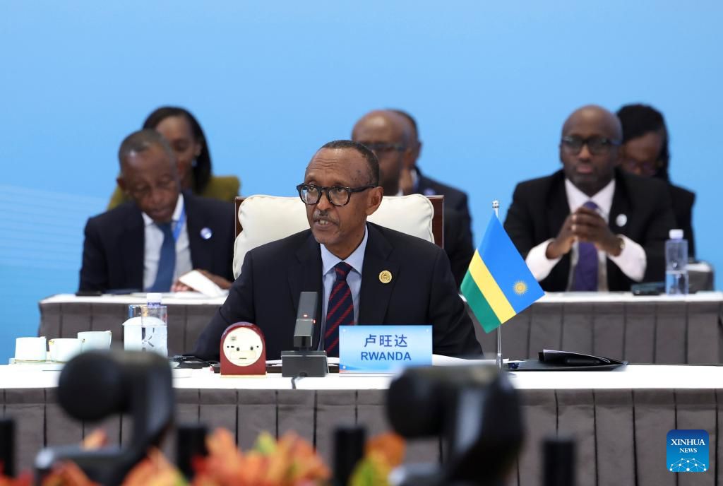 Rwandan President Paul Kagame speaks at a high-level meeting on state governance of the 2024 Summit of the Forum on China-Africa Cooperation (FOCAC) at the China National Convention Center in Beijing, capital of China, Sept. 5, 2024. Zhao Leji, a member of the Standing Committee of the Political Bureau of the Communist Party of China Central Committee and chairman of the National People's Congress Standing Committee, and Rwandan President Paul Kagame co-chaired the meeting. (Xinhua/Pang Xinglei)