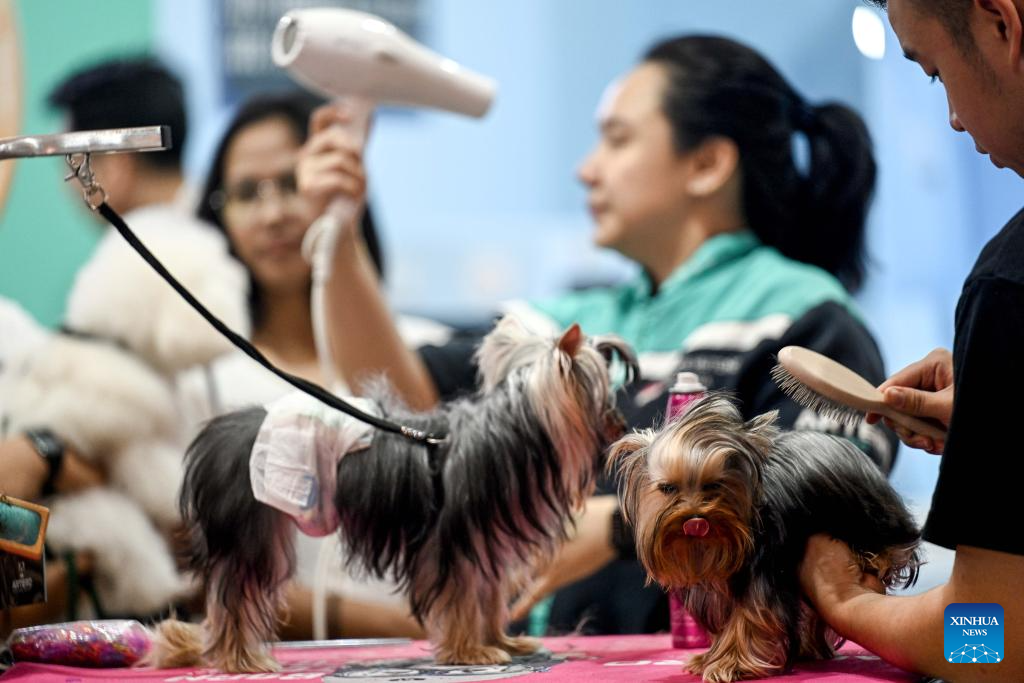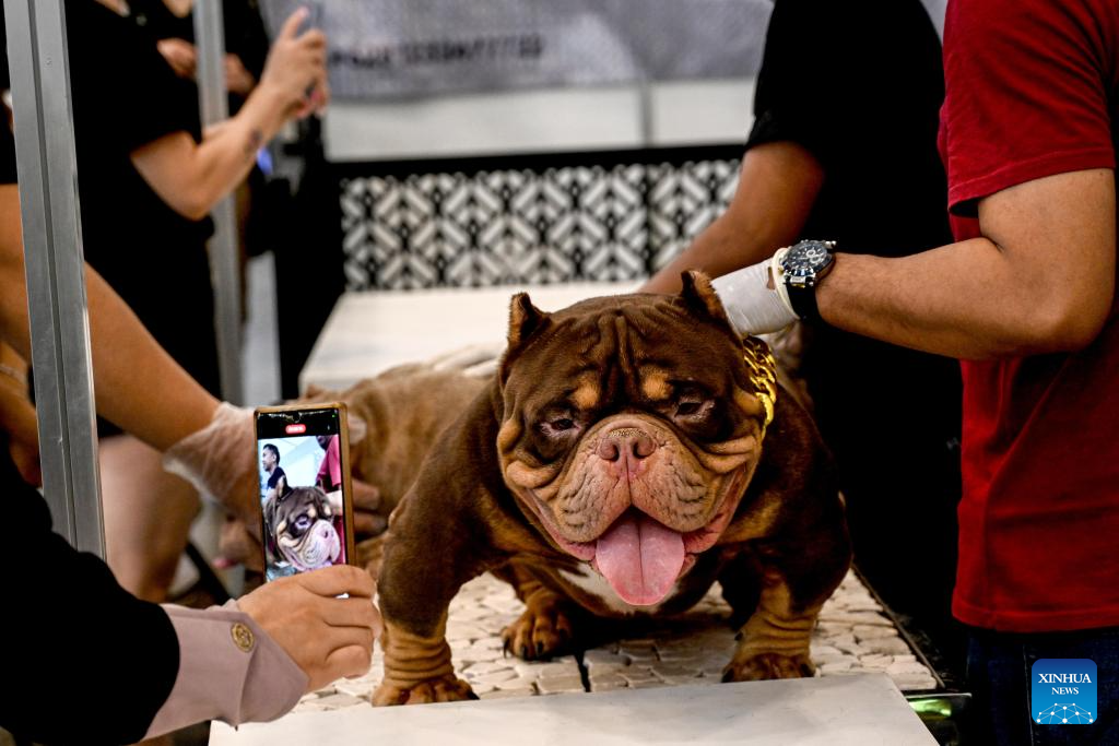 Pet dogs are seen during the Indonesia International Pet Expo 2024 at Indonesia Convention Exhibition (ICE) in Tangerang, Indonesia, Sept. 6, 2024. (Xinhua/Agung Kuncahya B.)