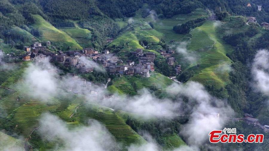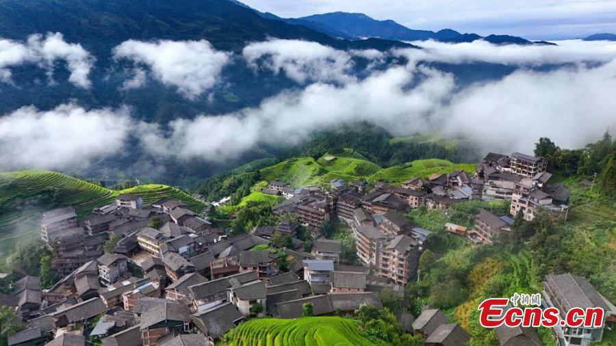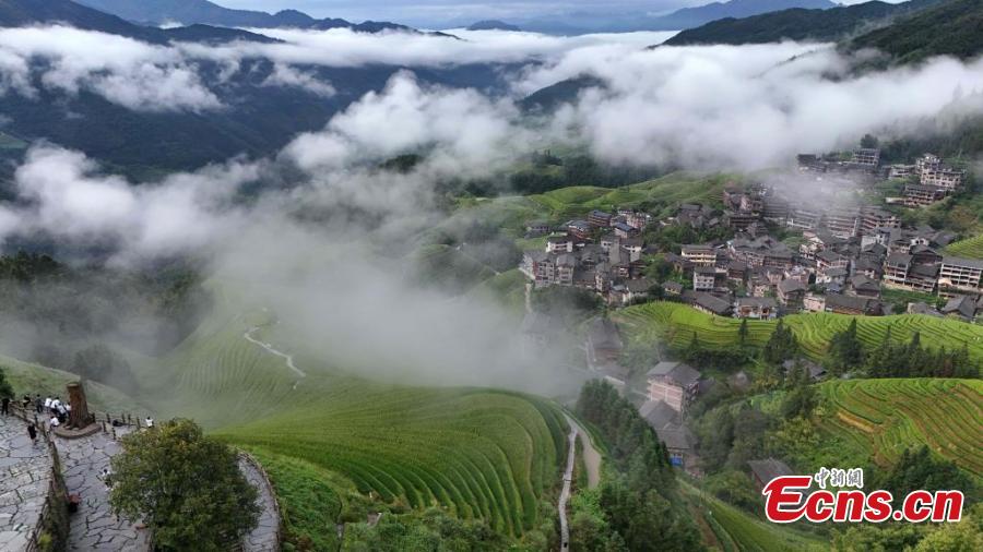 Landscape of the cloud-shrouded terraced fields after a rain forms a poetic image in Longsheng County of Guilin, south China's Guangxi Zhuang Autonomous Region, Sept. 9, 2024. (Photo: China News Service/Pan Zhiyang)