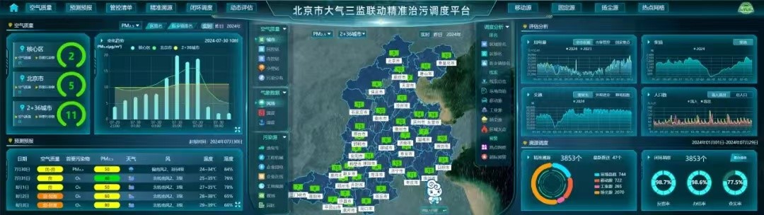 The air pollution control platform can rapidly assess air quality, comprehensively analyze pollution trends, intelligently trace pollution sources, coordinate resources across districts and localities, dynamically track activity levels, and thereby effectively analyze and monitor major pollution sources.