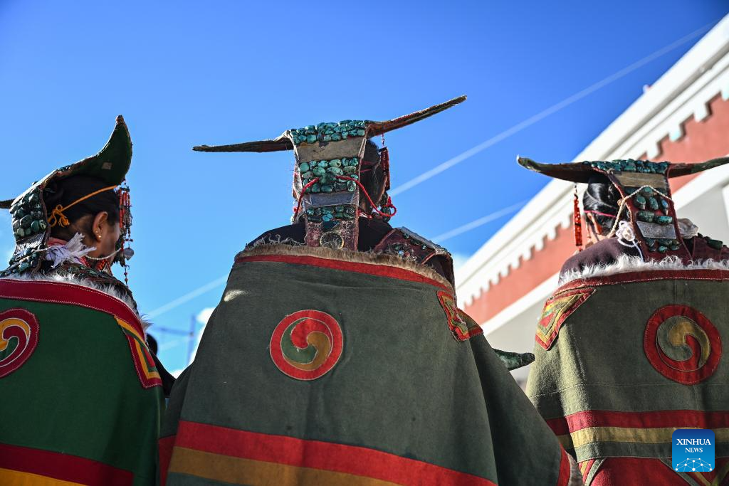 Villagers display folk costume in Pulan County, SW China's Xizang