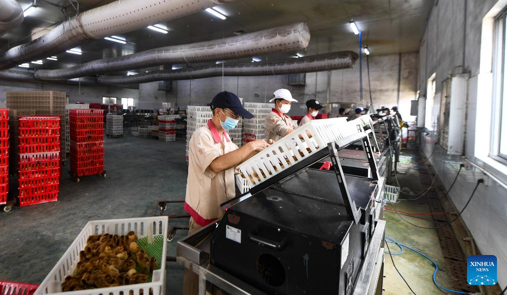 Workers pack eggs at an animal husbandry company in Chengmai County of south China's Hainan Province, Sept. 9, 2024. Hainan has witnessed its production gradually resumed after Super Typhoon Yagi, the 11th typhoon of the year, made landfall in Hainan on Friday and brought damage across the island. (Xinhua/Yang Guanyu)